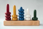 The bold primary colours and somewhat familiar form are reminiscent of a toy of bygone years- i can clearly remember playing with something similar as a child, yet as a mother myself now, i can say that this sort of plaything is no longer the norm, so already i am drawn to it on a wave of nostalgia and feel assured that i recognise it already. But the name. The title of the price jars me over and over into questioning what i am looking at.