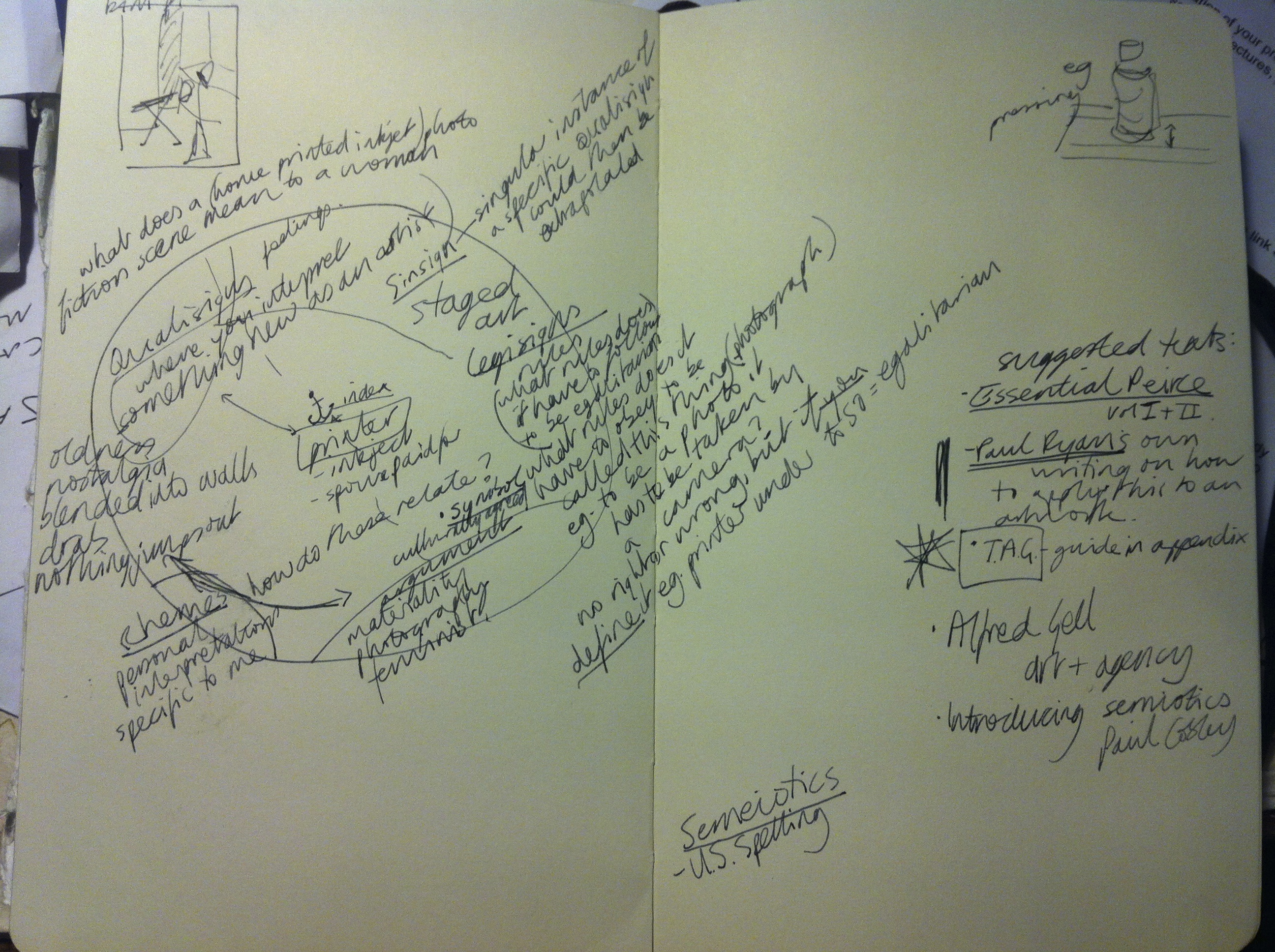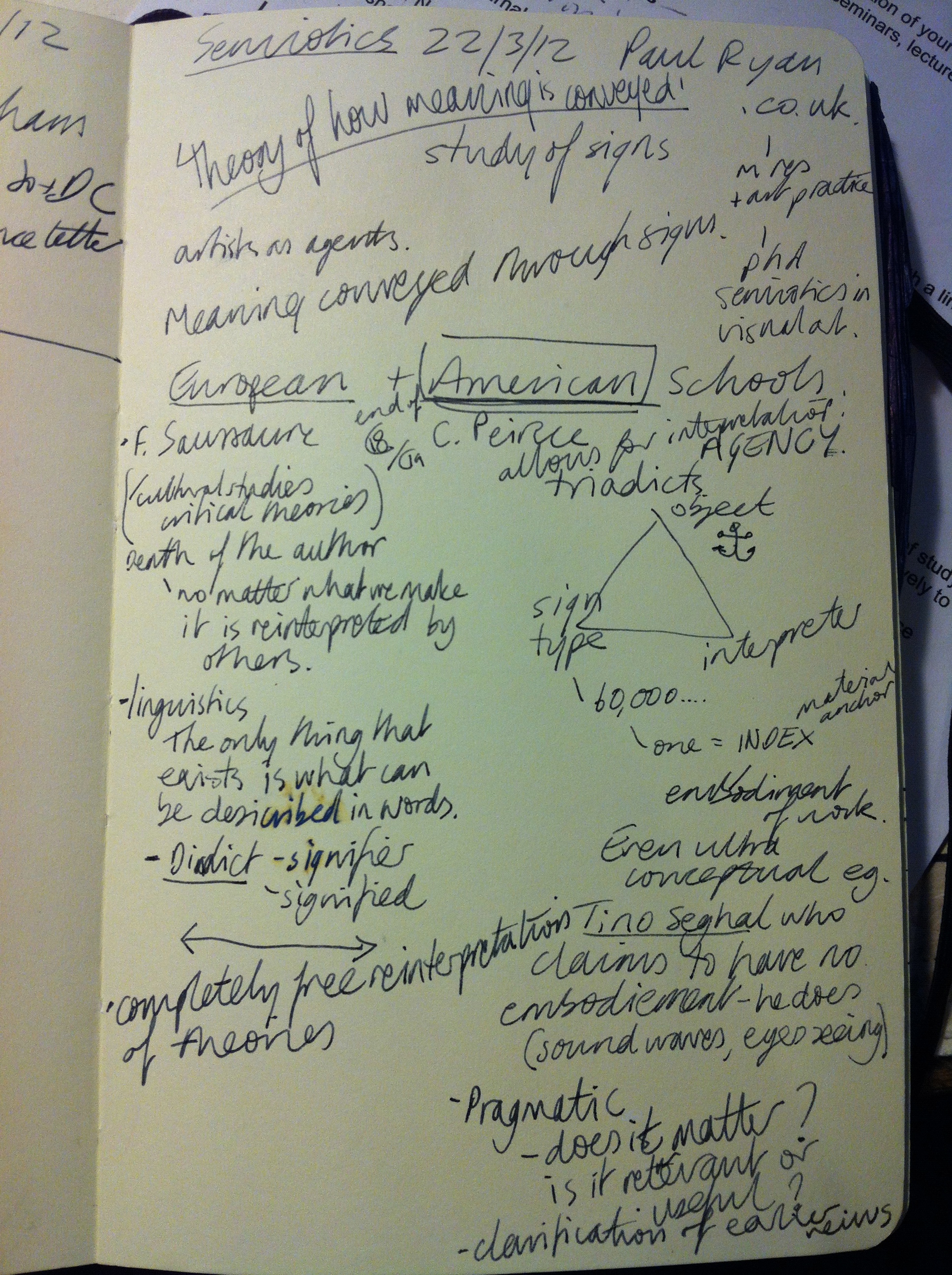 MRes tutor and artist Paul Ryan gave us a crash course in semiotic analysis of works- the theory of how things are conveyed, the study of signs.