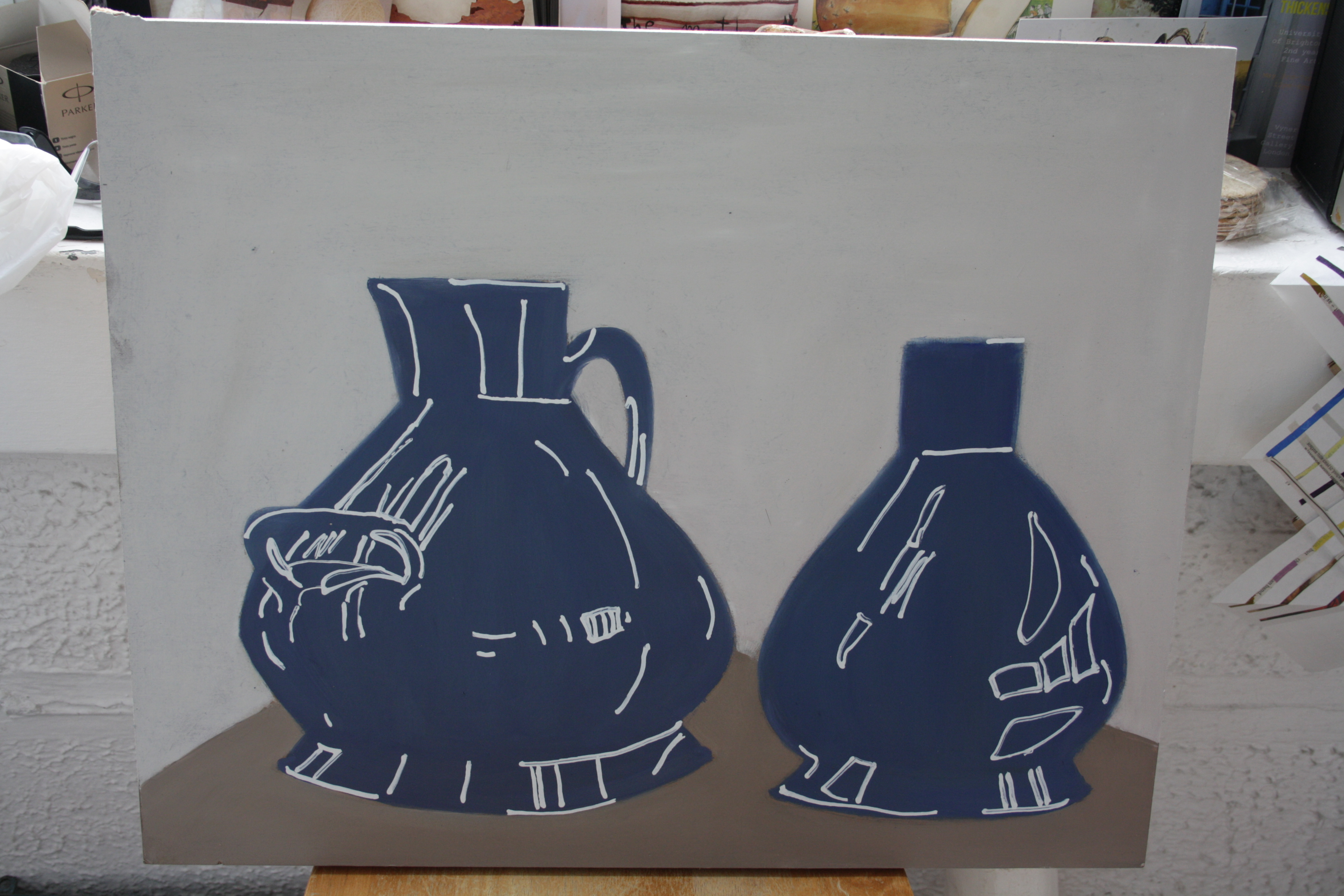 Upcoming show at the Cookhouse, Chelsea- Brief: work in a way which you don’t normally use, something personal. So I take this opportunity to face my colour demons and the paints which might possibly capture them. The subject: copper and brass weights and measures jugs. Empty. Eye level, filling the canvas. Autobiographical???