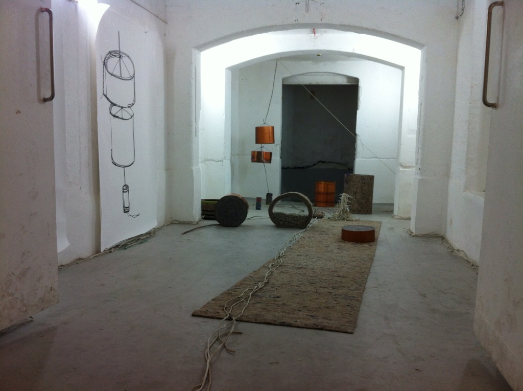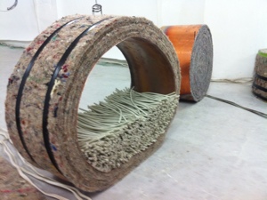 As they started to take their places in the space, the cut down water tanks, the wires and the textured coloured felt began to look less chaotic, and started talking to each other.