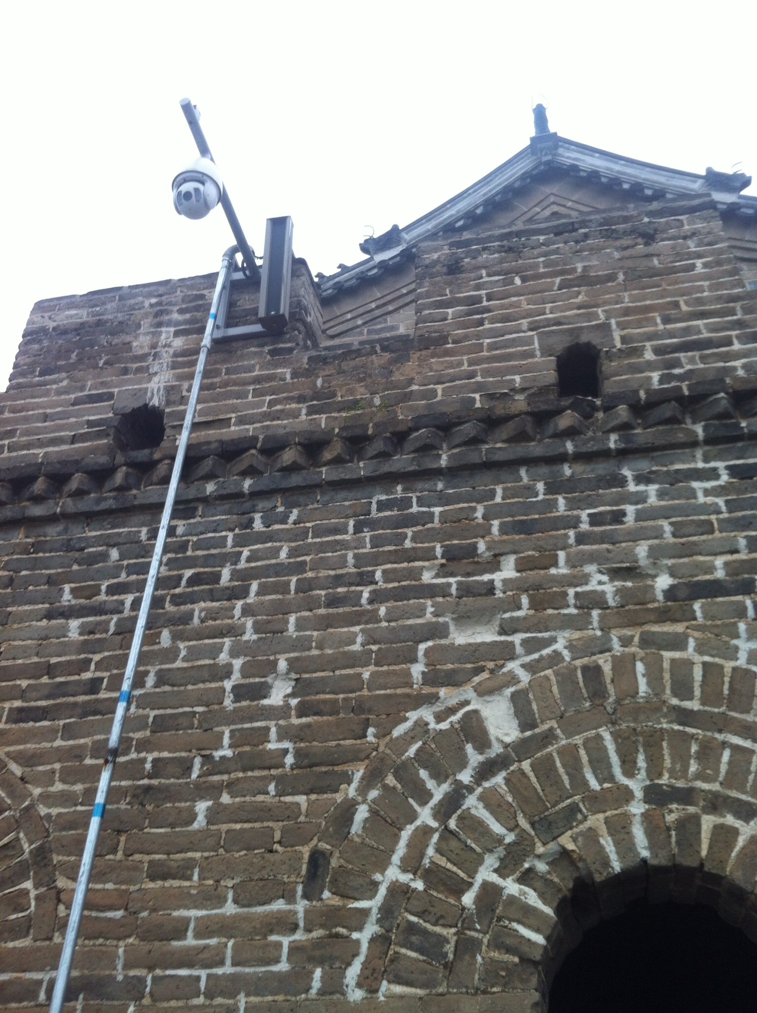 Seeing the CCTV cameras around the ‘villages’ on the outskirts of Beijing, amidst the dust and detritus where the artist studios we are working are located is contrasted with those I encountered at the highest part of the section of the Great Wall I climbed last week. Their reassurance of protection and rescue if needed is obviously not the whole storey. But up a mountain surrounded by nothing more than trees and the breeze, the cameras seemed more unwelcome. They dragged me back from musing on the human effort involved in building the wall hundreds of years ago, back to the present where I remembered I was actually walking on heavily restored steps.
