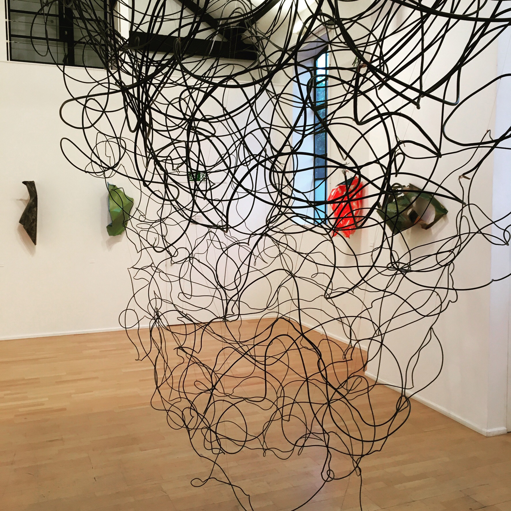 I worked with the title in mind, as it was the only part of the making I could be sure of before I began. This is part of my explorations of the communication network and our interaction with it, and the hanging form gives a monumental presence to materials we customarily ignore or are insulated from.