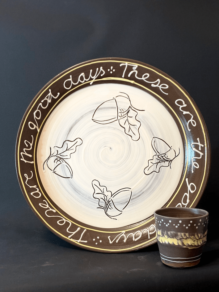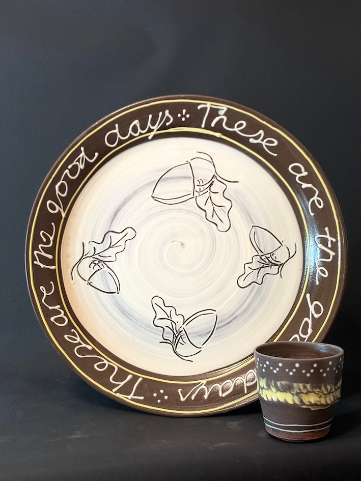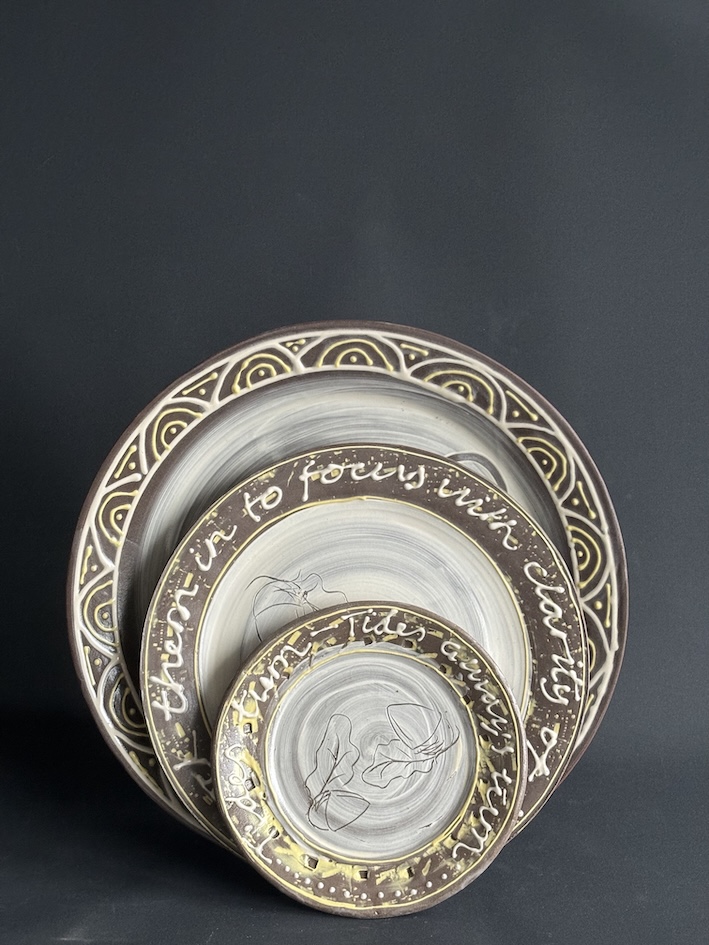 My pots usually have holes poked in them, are stained with copper carbonate, or are left as plain burnished clay to challenge assumptions about functional vessels.
